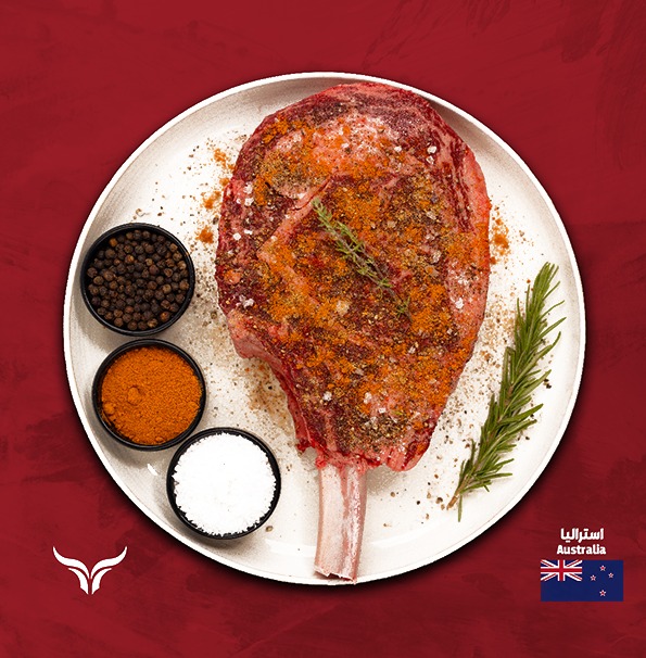 A premium cut of Australian Wagyu beef known for its high quality and distinctive marbling (Marbling Score 4), which gives the meat extreme tenderness and rich flavor. It is cut from the ribeye on the bone for a deeper flavor when cooked, ideal for grilling or roasting to create a gourmet meal.