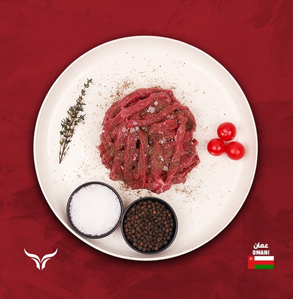 Freshly minced, local Salalah beef with a firm texture and clean flavor, ideal for burgers, kofta, dips, samosas, and stuffed vegetables. Vacuum-packed to maintain freshness and quality, typically available in 500g and 1kg sizes depending on stock.
