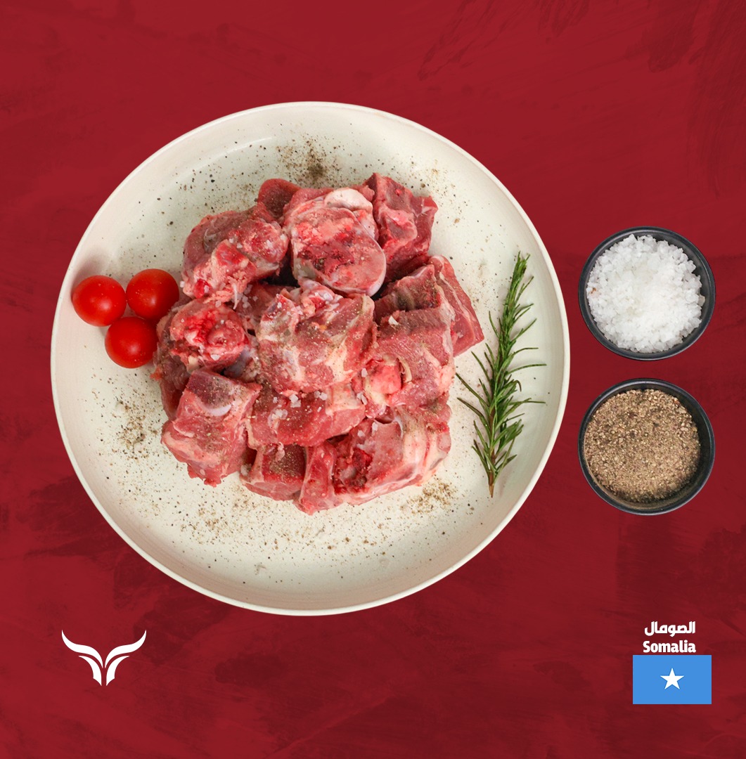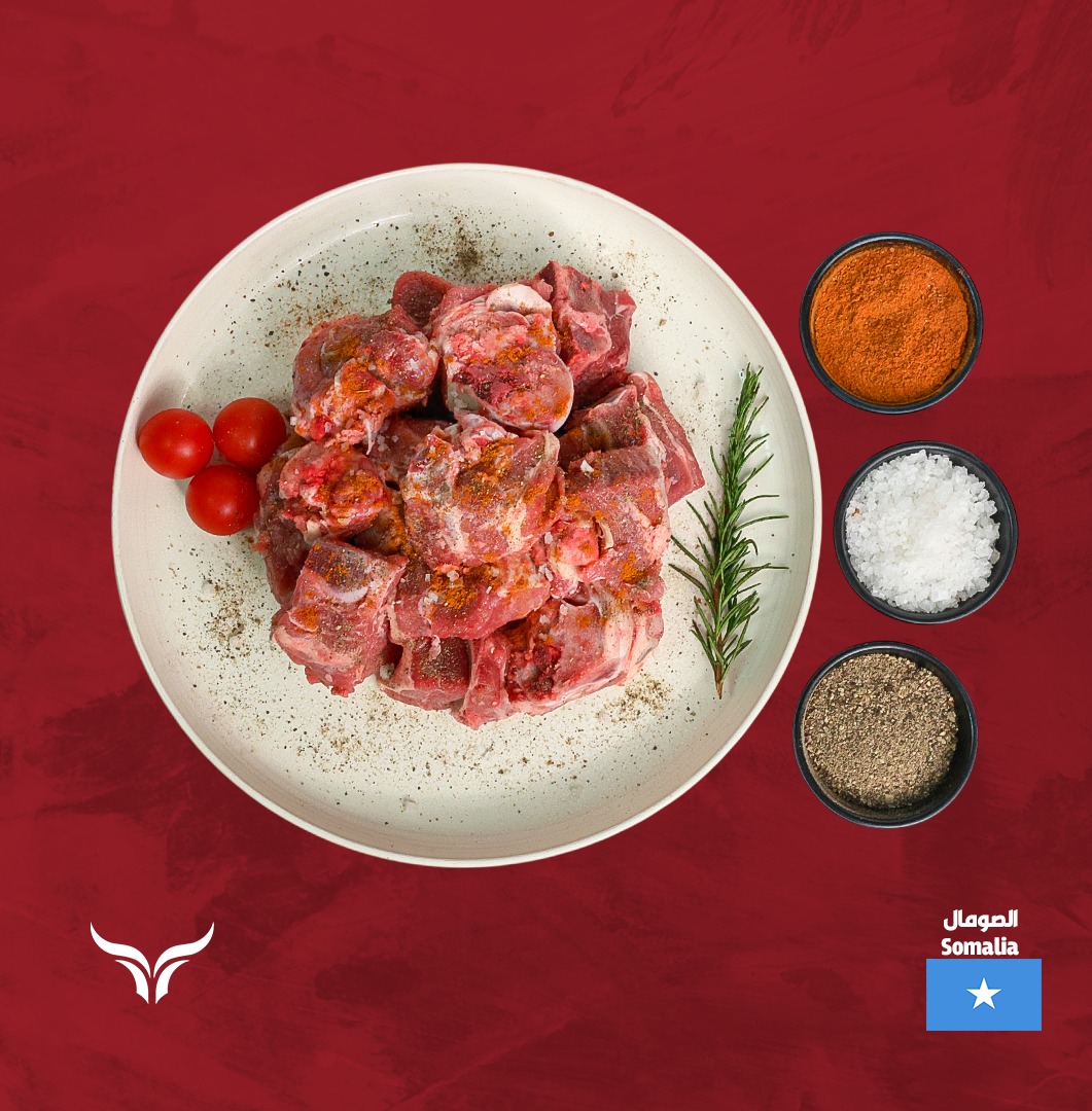 Fresh, locally sourced Somali lamb cubes with the bone, known for their high quality and rich flavor. Ideal for mandi, fermoza, stews, soups, or any recipe that calls for tender lamb that imparts a deeper flavor.