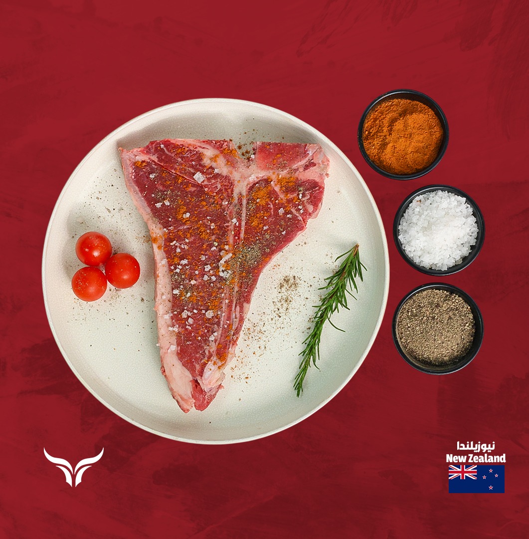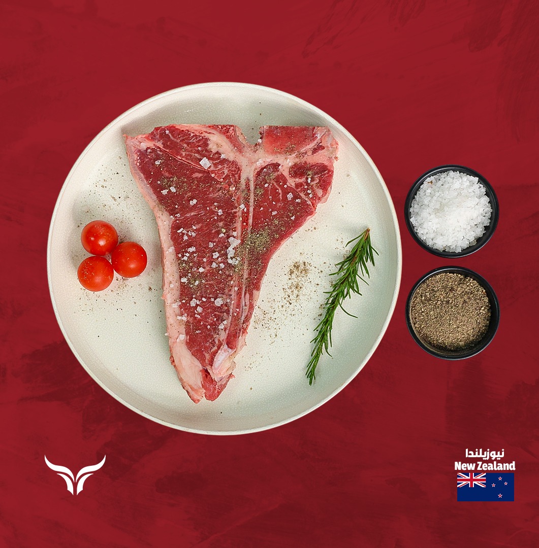 A premium New Zealand grass-fed T-bone steak combining tenderloin and striploin in one cut. Naturally rich in flavor and ideal for grilling or quick pan-searing.