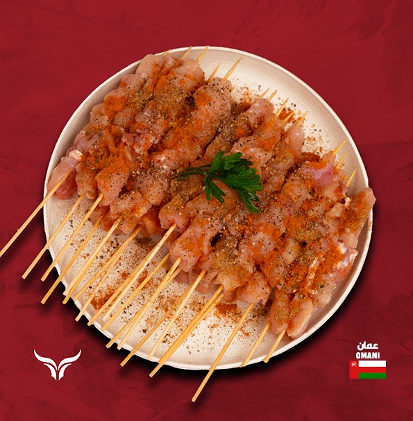 Enjoy authentic Omani flavors with fresh chicken skewers, seasoned with traditional spices carefully blended to deliver an irresistible taste. Tender, high-quality chicken pieces are marinated in a special blend of local spices, garlic, ginger, and lemon, reflecting the rich Omani flavor.