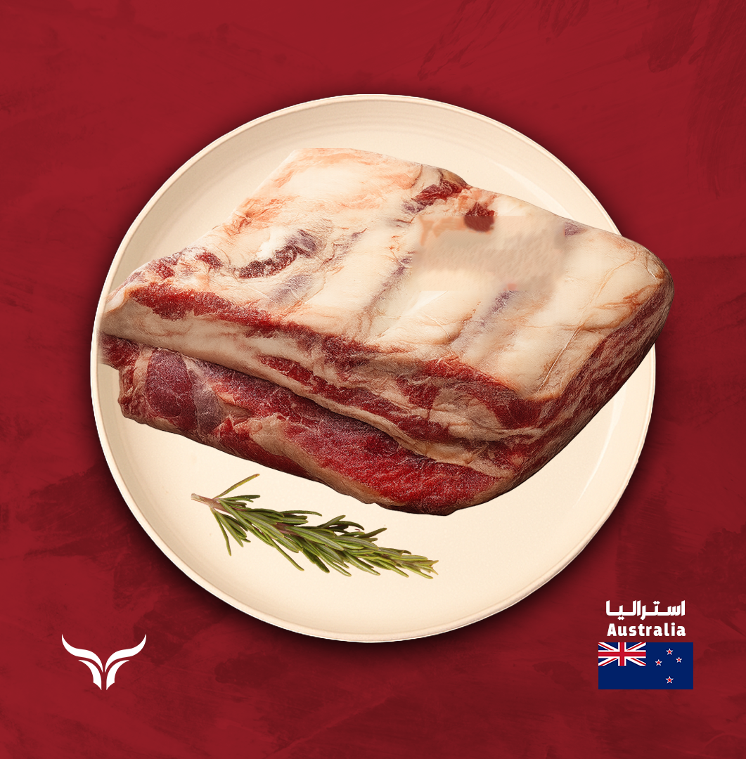 Australian Angus short ribs on the bone with natural fat running through the fibers, delivering a deep, meaty flavor and tender texture, especially when slow-cooked or indirectly grilled. They retain their juices and create a brilliant browning when properly seared.