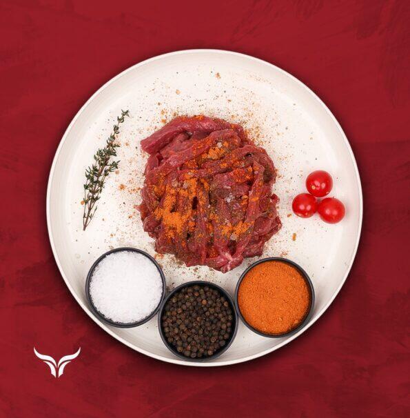 خلطة مثالية من شرائح الدجاج واللحم البقري المتبّلة بتوابل شهية، جاهزة للطهي.