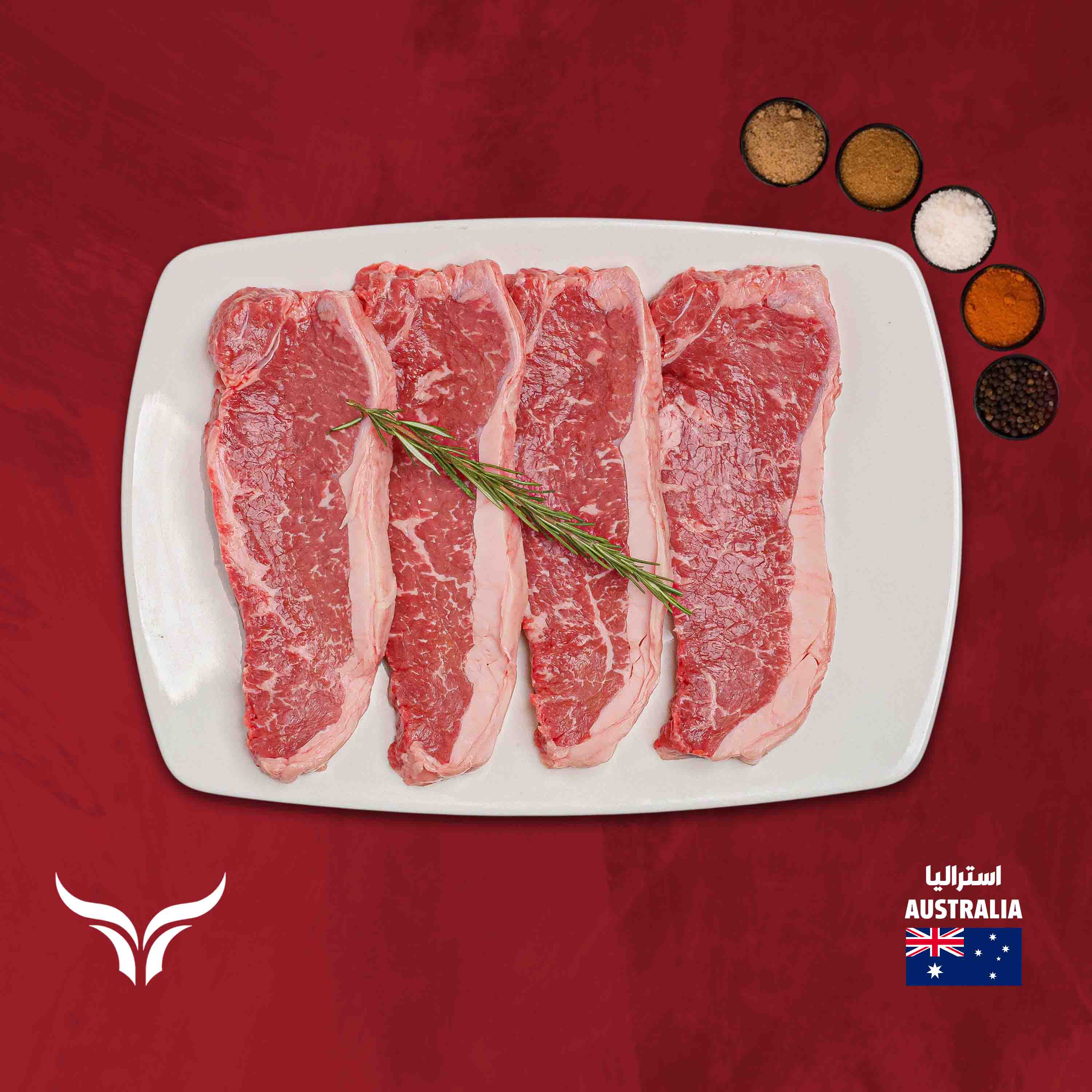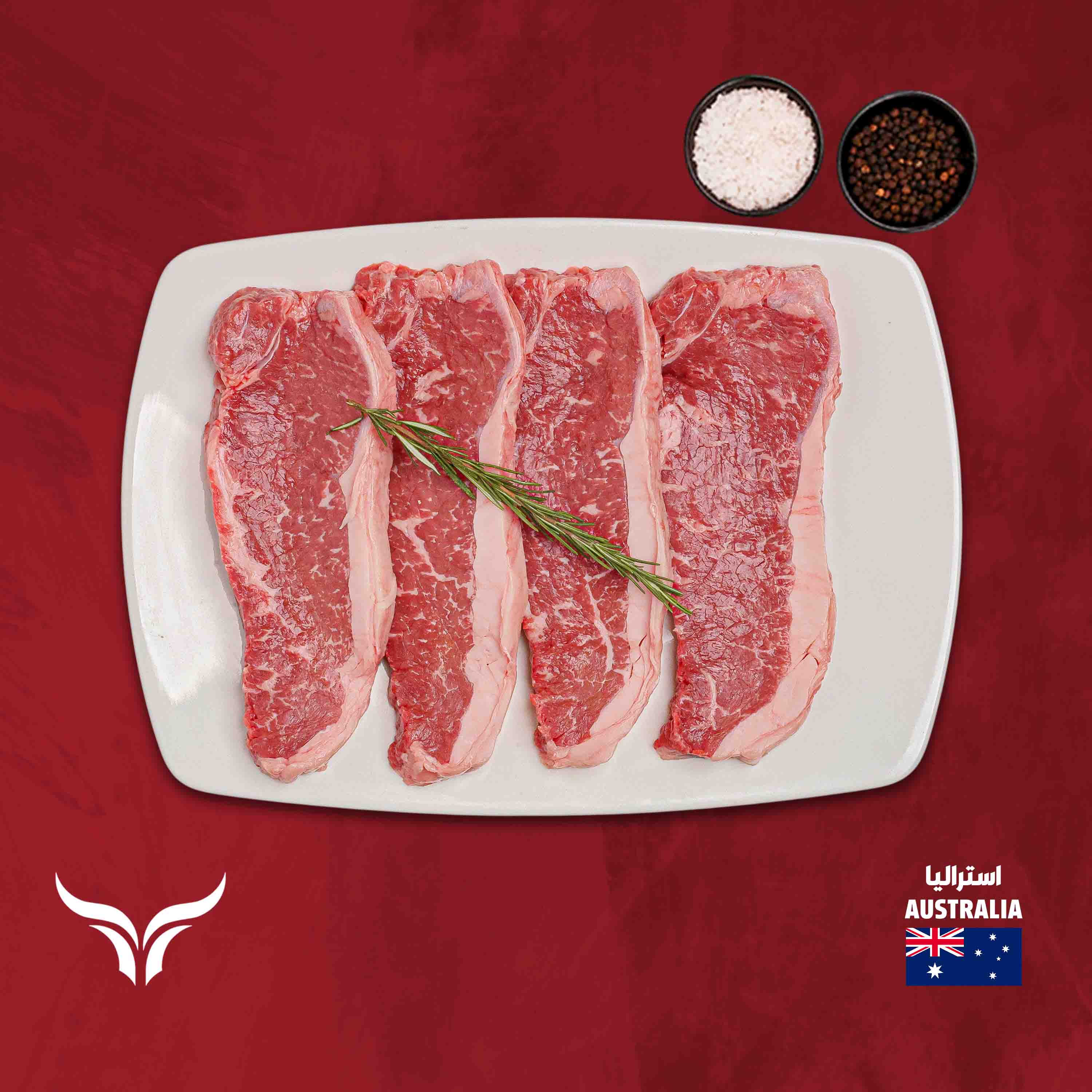 عرض 4 شرائح ستربلوين لحم أنجوس أسترالي MB2+ 250 جم × 4