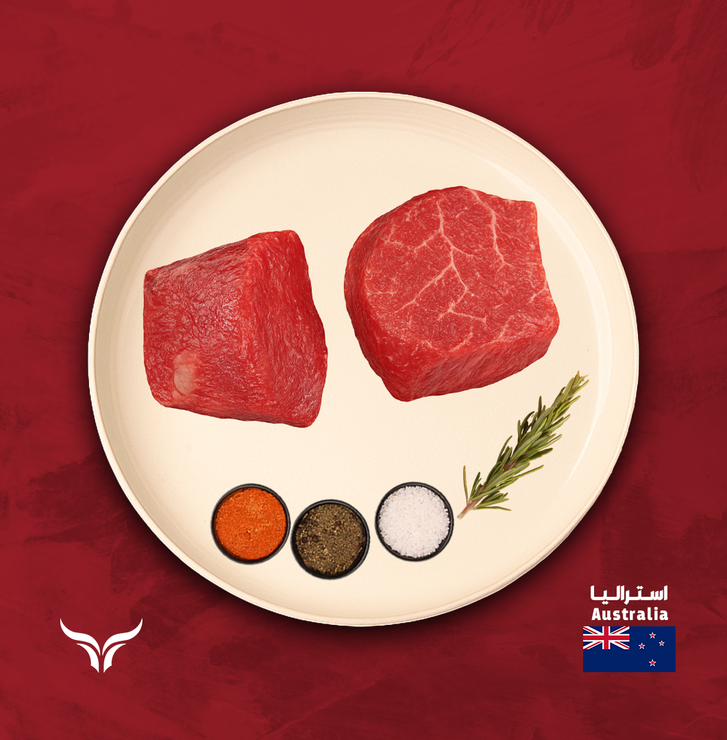 واغيو أسترالي MB 4/5 بترخيم غني وعصارة عالية. قطع مختارة (ريب آي/ستربلوين/تيندلويـن) بأحجام متعددة للشوي السريع أو التشويح ثم الإنهاء بالفرن. خيار تفريغ هواء.